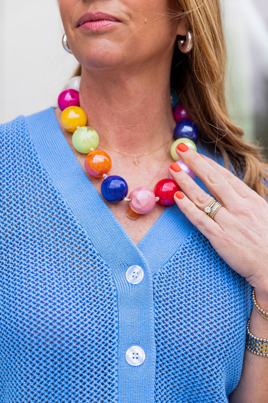 Lightweight, polished, and easy to layer — the Bright Sky Knit Cardigan adds a fresh pop of cool-toned color while still feeling effortless and wearable.