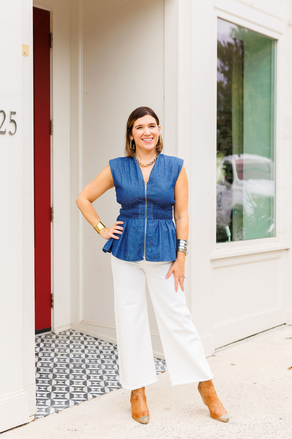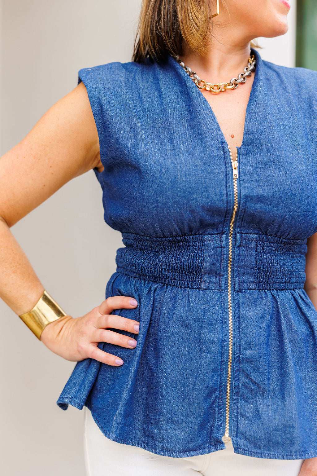 Denim Zip Top