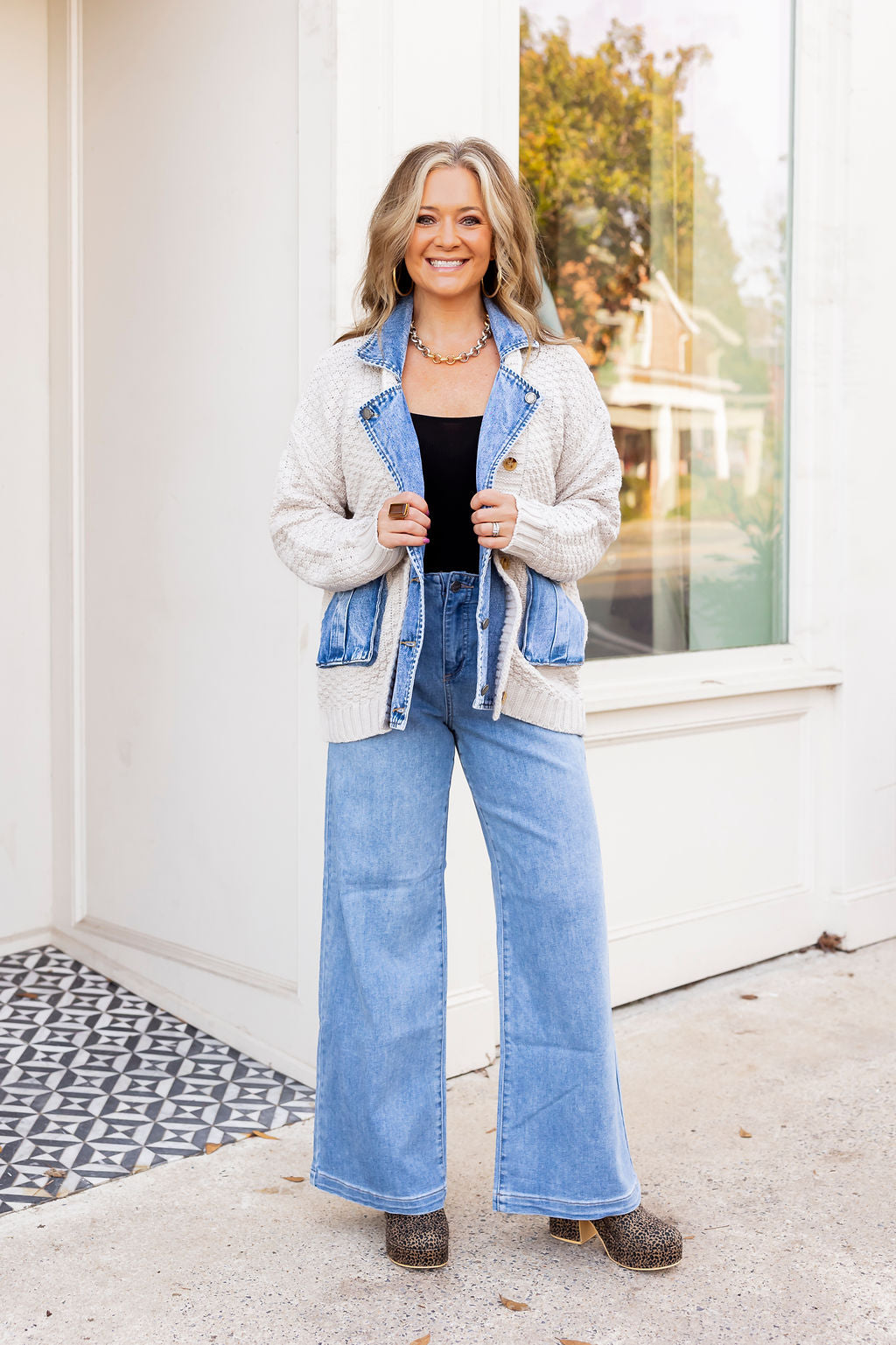 The Everlyn Denim-Mix Cardigan Jacket