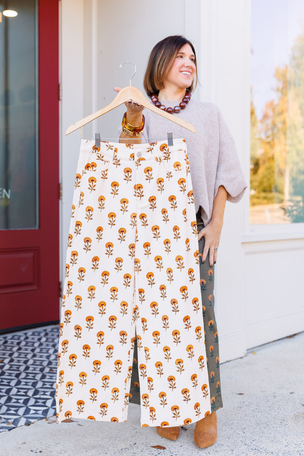 Indulge in the luxurious Meadow Daze Denim, featuring a rich autumn-hued denim adorned with a playful floral design. This ankle-length classic fit offers a sophisticated touch to your fall wardrobe. Elevate your style with this exclusive piece.