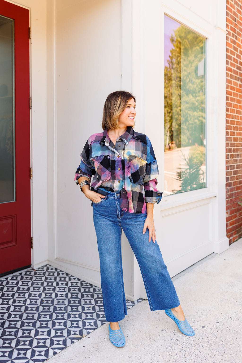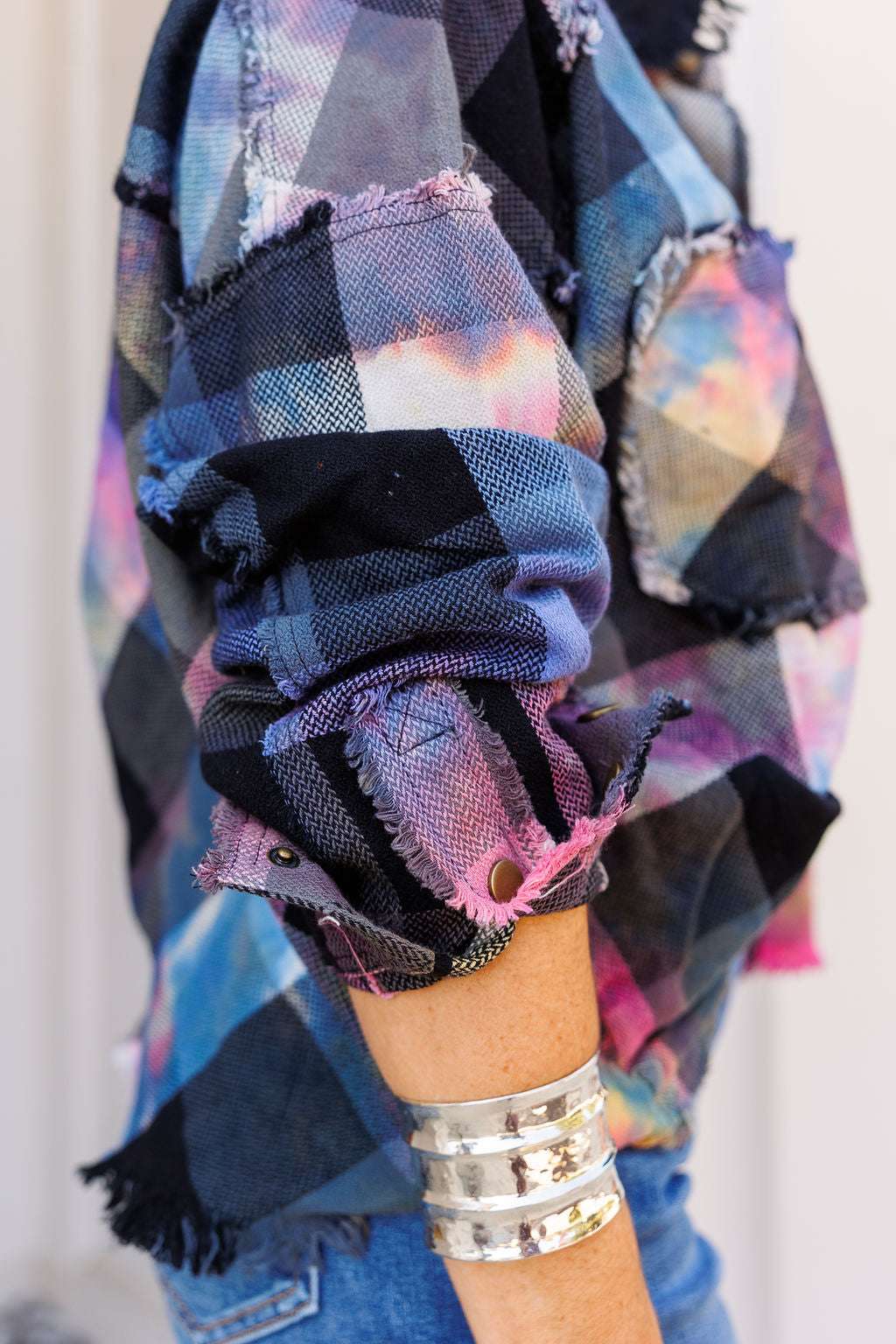 Our Neon Lights Flannel is soft, fun, and unique - peek the brass buttons and frayed hem! Wear it as a shirt or as a jacket. The options are endless for this fun piece! Runs slightly oversized.